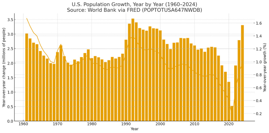 Part of it is, simply, that the population of the United States isn’t growing as fast as it used to. Or, to put it more accurately, the number of people being added is the same as it was in 1960, when the nation’s population was half what it is today: about 2.5 million to 3 million people a year. So, relatively speaking, there just aren’t as many people available to move as there used to be.